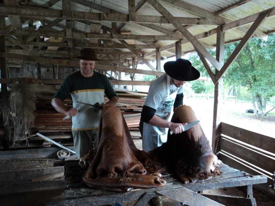 O artesão adquire o couro usado em suas peças em frigoríficos, dando preferência sempre para bovinos de raças europeias. “Eu vou para a mangueira e seleciono os animais pela qualidade do couro. E depois preparo o material, sou eu que faço todo o curtimento”, salienta.